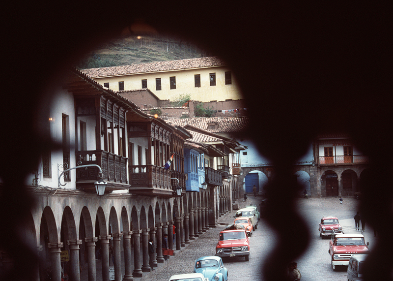 Source: WTL photo taken from a restaurant window on the Plaza de Armas in central Cuzco. Comments: This photo celebrates the mysterious beauty of Spanish colonial architecture in Perú, notably the exquisite wood carving on the Spanish-style balconies. |