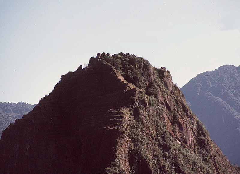Source: WTL photo taken on site on or near Huayna Picchu. Comments: At the very peak the Incas built a special shrine for the Inca (the emperor himself) and a very select few. The site was covered with flowers during the last years when the Incas used this special retreat. |