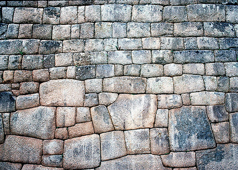 Source: WTL digitized slide photo© taken on site in Machu Picchu. Comments: Here is a close-up of one of the most famous parts of the stone walls of the citadel of Machu Picchu. Remember what you discovered in the virtual academic visit to Cuzco (see: => Cuzco #23) about the Incas' stones as recording devices. Indeed, one gets a mysterious feeling or intuition about something magical or unknown as one walks along these stone walls. Humanities note: The monumentality and durability of stone is one of the core notions of pre-Columbian Latin American humanities in art and architecture. |