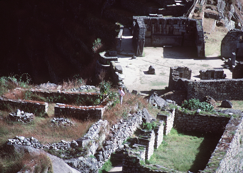 Source: WTL photo taken on site in Machu Picchu. Comments: I didn't see this lone woman standing next to a bush with flowers on it with my naked eye. I saw her only through the camera's zoom lens (a Canon A1 with 300mm lens). She is right in the center of this photo. At first I didn't think much about what I and the lens were seeing. |