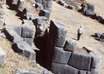 Source: WTL-digitized photographs taken on site in the Sacsayhuaman archeological site near Cuzco, Perú. (Quechua: Saksaq Waman). An older Spanish spelling stressed the last syllable: Sacsayhuamán. In the 16th century, a major Spanish chronicler of Peru said this about ancient hillforts, like Sacsayhuaman, in the Andes: "In the old times, before the Incas ruled, it is well known that the natives of these provinces did not live all together in towns as they do now [1553], but in strongholds with their fortresses, which they called 'pukaras,' from which they sallied forth to wage war with one another." (Pedro Cieza de León, Crónica del Perú: Segunda Parte. Lima: Pontificia Universidad Católica del Perú, 1985, II, xxiv. To view the Sacsayhuaman series, click on the first image. |