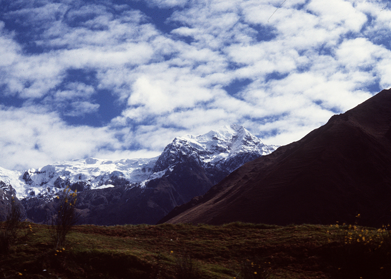 Source: WTL photo© taken on site on the tram to Machu Picchu. Comment: Comment: We now stare down in the Urubamba River Valley while looking up at the incredibly imposing peaks of the Andes as they tower above us up to 22,000 feet high. The train is at about 10,000 feet high at this point. |