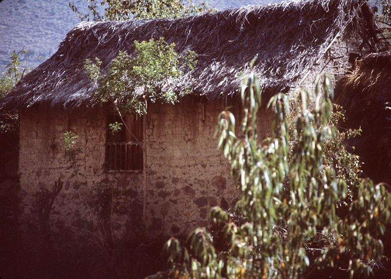 Source: WTL digitized photo© taken on the tram trip to Machu Picchu. Comments: This building is a house that a family of vendors you've seen on this photo tour live in. The idea here is that this habitable building not too dissimilar from the construction you will see in the ruins of Machu Picchu. Machu Picchu, of course, was built in a much sturdier way, but, still, the thatched roof and simplicity, as you will see, are similar. |