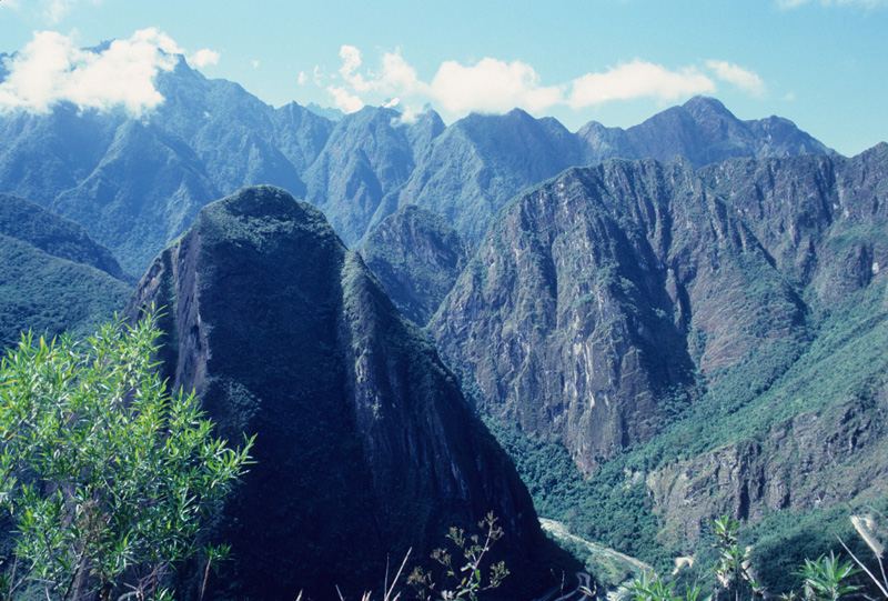 Comments: From the heights of Machu Picchu we look down to the Urubamba as it flows north and downriver away from Machu Picchu.