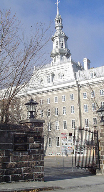 Comments: The Old Seminary with the stone wall and half of the wrought iron gate. This Jesuit seminary was founded by monseigneur Laval (later the first bishop of Nouvelle France) in 1663. In general, this architure is a synthesis of the styles of French monastic architecture from the 16th and 17th centuries. Now the Old Seminary houses the Musée de l'Amérique Française (Museum of French America).