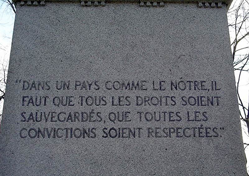 Comments: Here is the inscription on one side of the monument to Marie Rollet: "In a country such as ours one must protect the rights of everyone and that all opinions be respected."