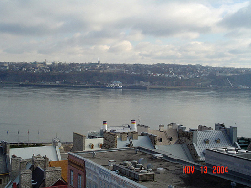 Comment: Québec City and the Lévis opposite occupy a dramatic location on the river, both being built primarily high above the river. This photo, similar to #31, is attempting (badly) to show roofs of the "lower city" (la bassed ville), which, in fact, is the city's oldest settlement, and it is a traditional place where city tours start.